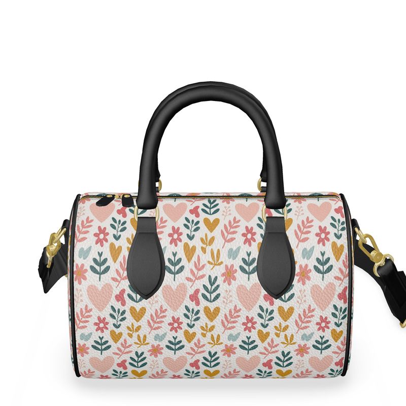 Diese exquisite Mini-Fasstasche ist mehr als nur ein Accessoire – sie ist ein Liebesbrief an das Leben! Das bezaubernde Muster aus zarten Herzen, Blumen und Blättern in harmonischen Pastelltönen vereint sich mit edlem Nappaleder zu einem echten Luxus-Piece, das deine Persönlichkeit strahlen lässt.