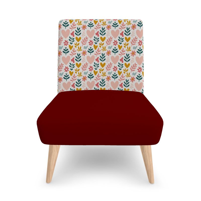 Dieser handgefertigte Occasional Chair ist weit mehr als nur ein Sitzmöbel – er ist eine Einladung zur Gemütlichkeit, ein Statement für bewusstes Wohnen und ein Kunstwerk, das Wärme und Lebensfreude in jeden Raum bringt. Das verspielte Blumen-Herz-Muster auf der Rückenlehne kombiniert mit edlem, tiefrotem Velours schafft einen Look, der zeitlose Eleganz mit persönlichem Charme vereint.